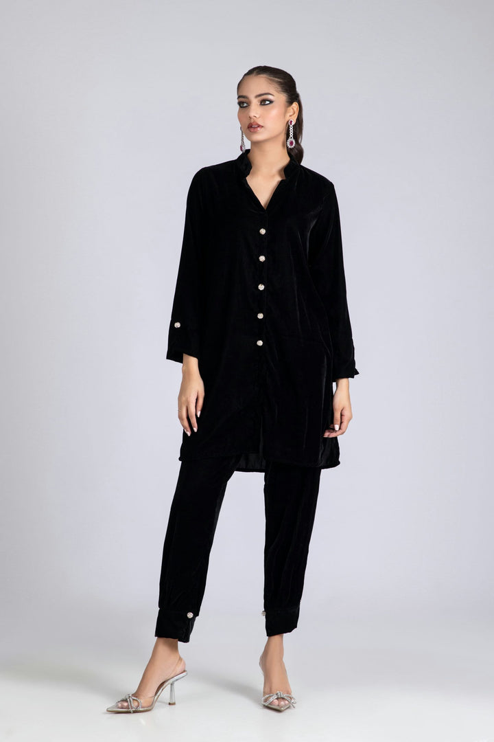 The ultimate must-have colour for this winter season. The front open velvet set with cuffed pants is a right fit to keep you warm and cozy.