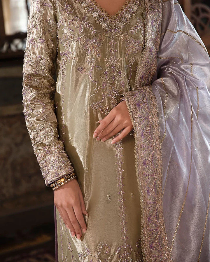 Elevate your style quotient with our silk ensemble featuring hand-embellished details. The meticulous craftsmanship reveals an interplay of sequins, pearls, and metallic accents, illuminating every movement.